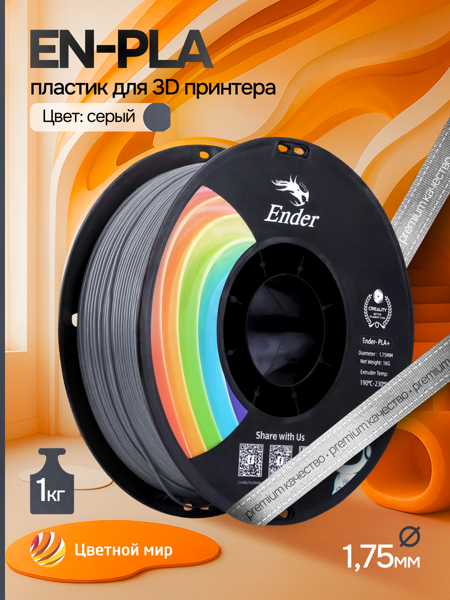 Купить Катушка EN-PLA+ пластика Creality 1.75 мм 1кг, серый с доставкой по всей России.