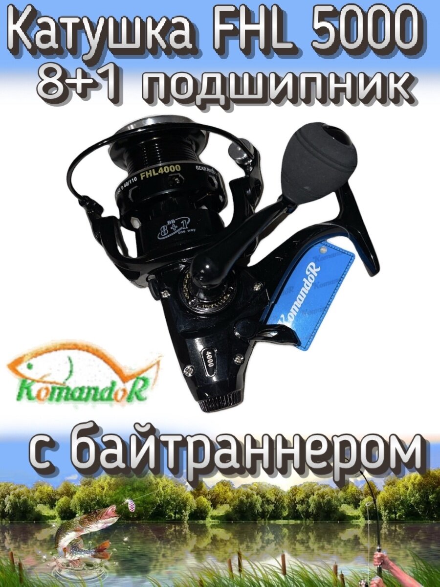 Катушка Komandor FHL 5000, подшипников: 8+1, передний + задний фрикцион, передаточное отношение 5.5:1, с байтраннером: сравнение цен, характеристики, фото, актуальное наличие и цены.