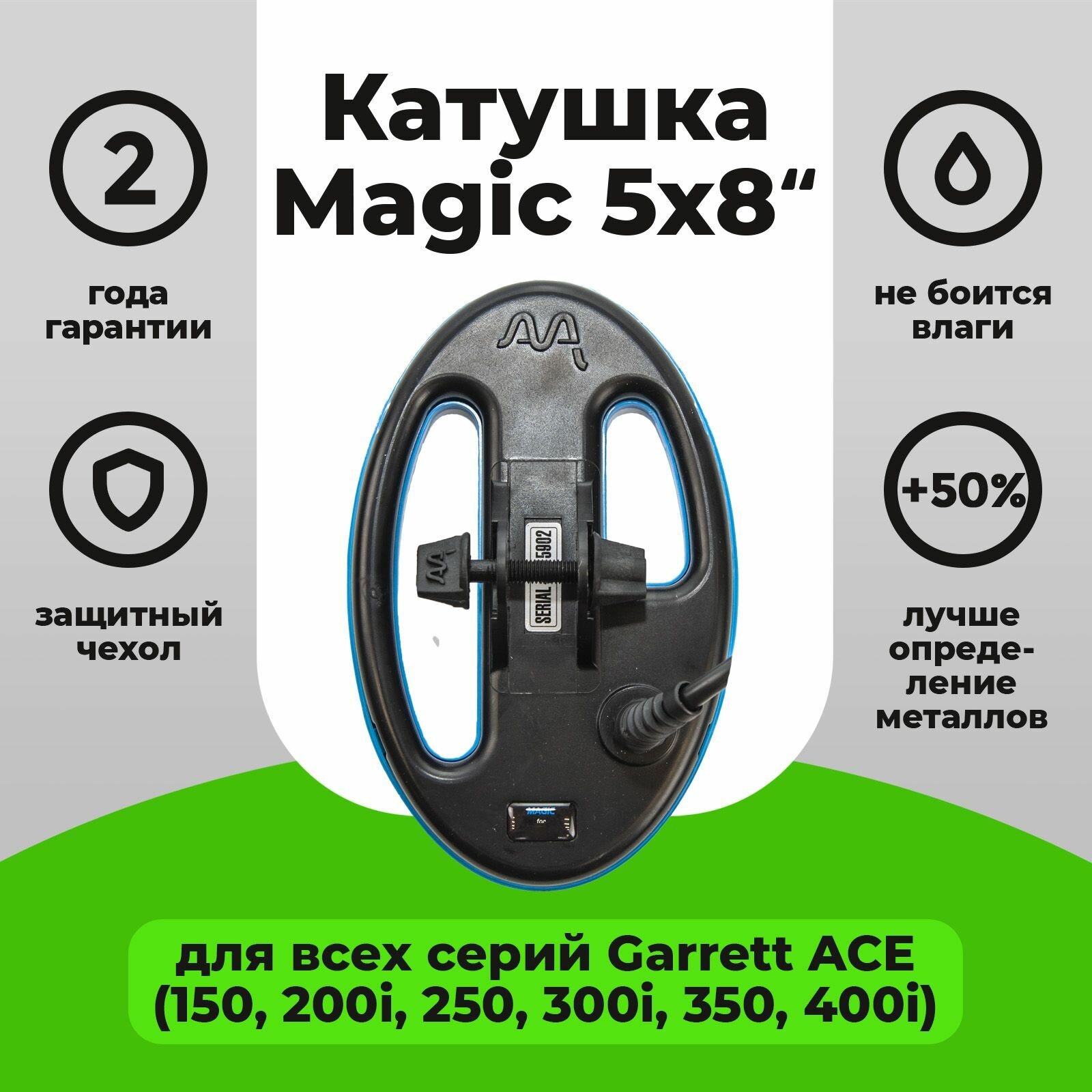 Катушка Magic 5х8 для металлоискателей Garrett ACE 150 — 200i — 250 — 300i — 350 — 400i водонепроницаемая: сравнение цен, характеристики, фото, актуальное наличие и цены.