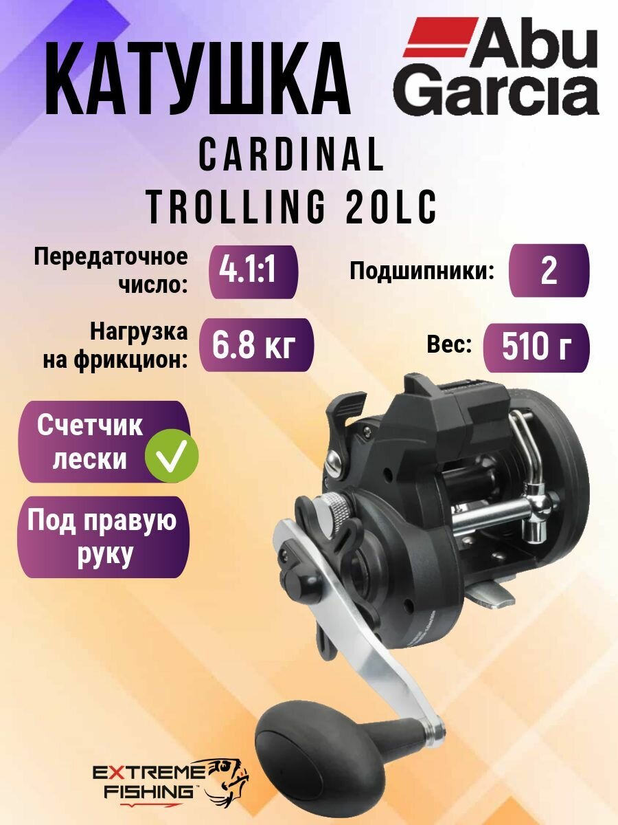 Катушка мультипликаторная со счетчиком лески Abu Garcia Cardinal Trolling 20LC: сравнение цен, характеристики, фото, актуальное наличие и цены.