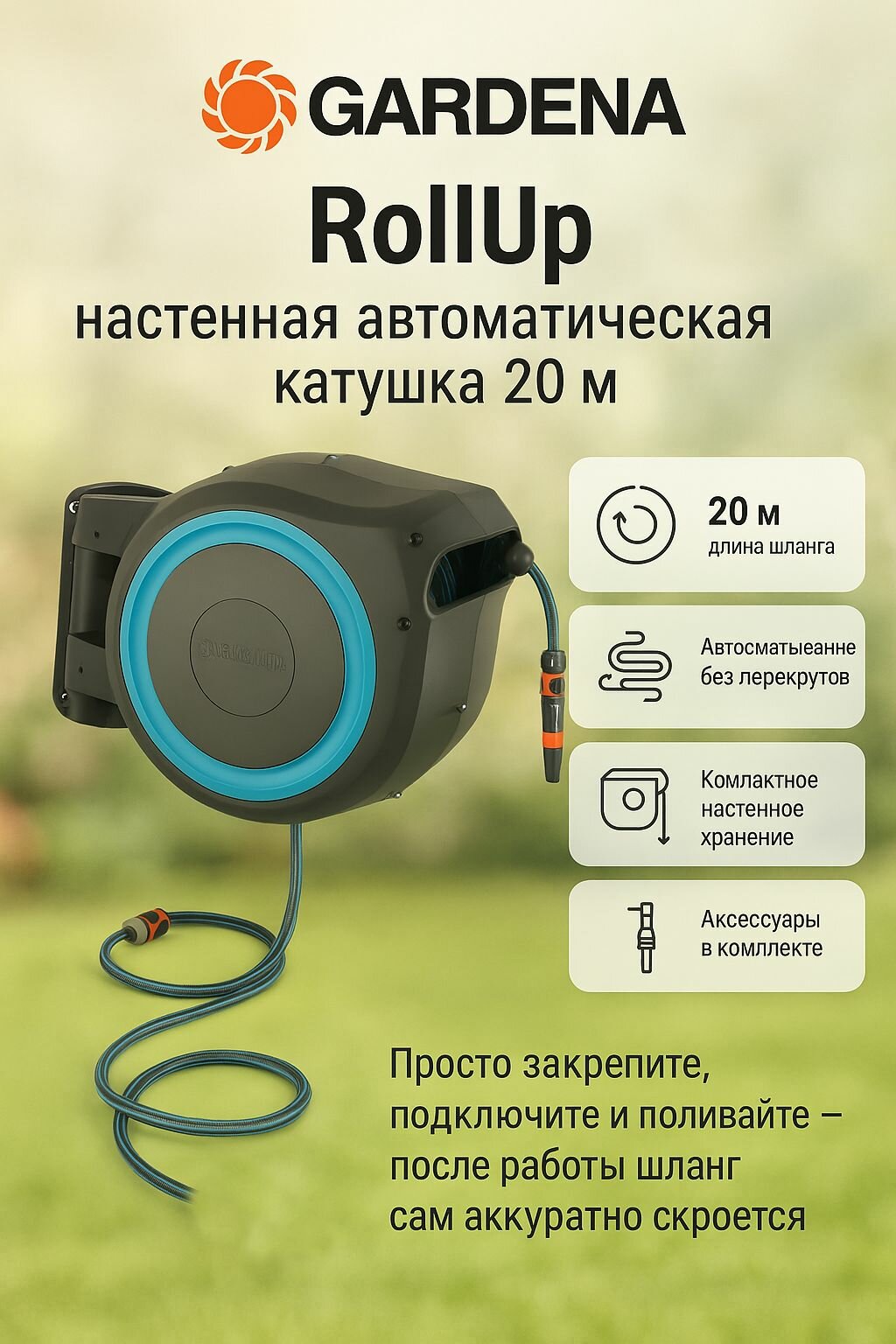 Катушка со шлангом настенная автоматическая Gardena RollUp M 20M: сравнение цен, характеристики, фото, актуальное наличие и цены.