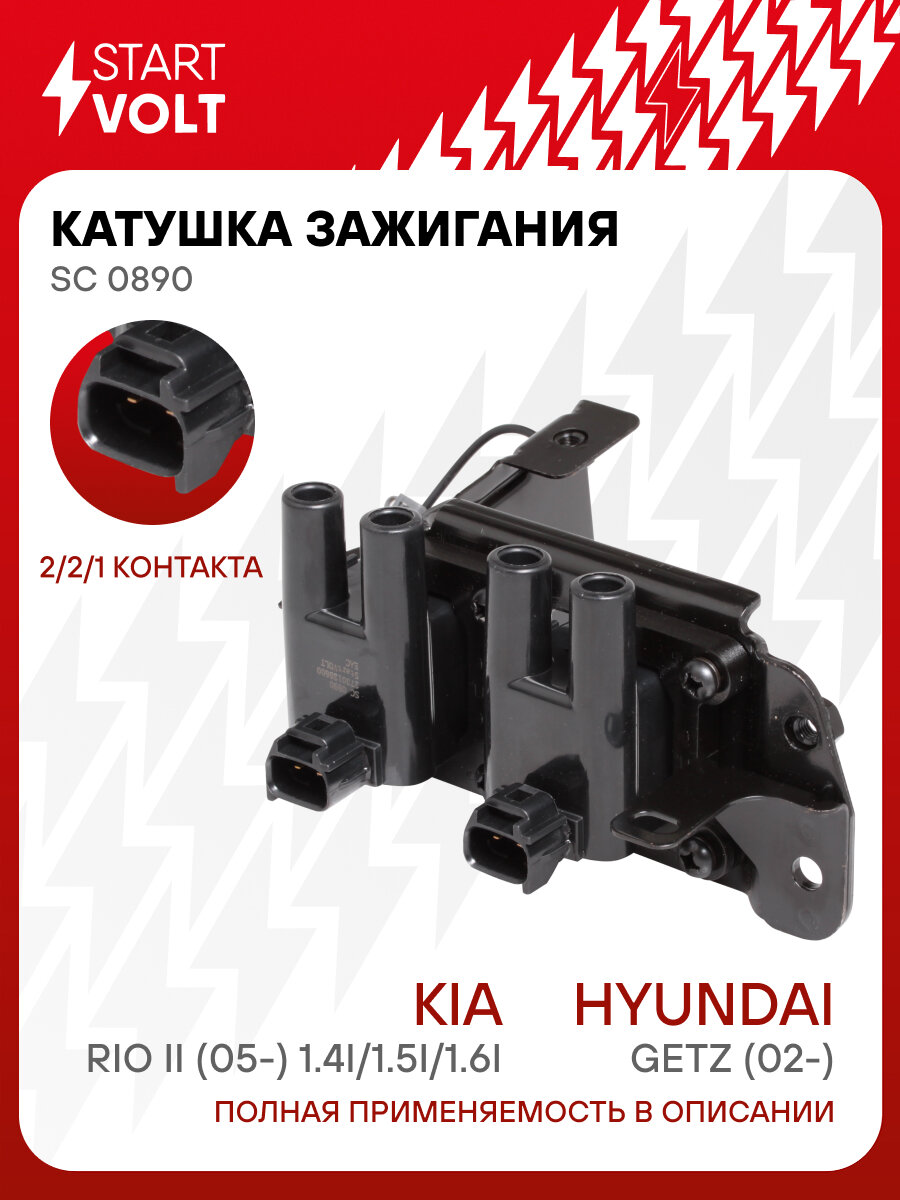 Катушка зажигания для автомобилей Hyundai Getz (02-)/Kia Rio II (05-) 1.4i/1.5i/1.6i SC 0890 StartVolt: сравнение цен, характеристики, фото, актуальное наличие и цены.