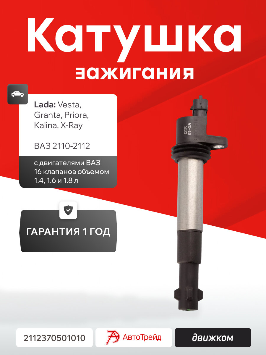 Катушка зажигания Лада Веста 1.6-1.8, Гранта, Калина, Приора (16 клапанов) АвтоТрейд 2112-3705010-13 / 0221504473: сравнение цен, характеристики, фото, актуальное наличие и цены.