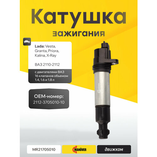 Катушка зажигания Лада Веста 1.6-1.8 16 клапанов с двигателями ВАЗ на механике и автомате один из основных элементов системы зажигания автомобиля. Она обеспечивает высокое напряжение, необходимое для создания искры на свече зажигания, путем преобразования низкого напряжения аккумуляторной батареи в напряжение несколько киловольт