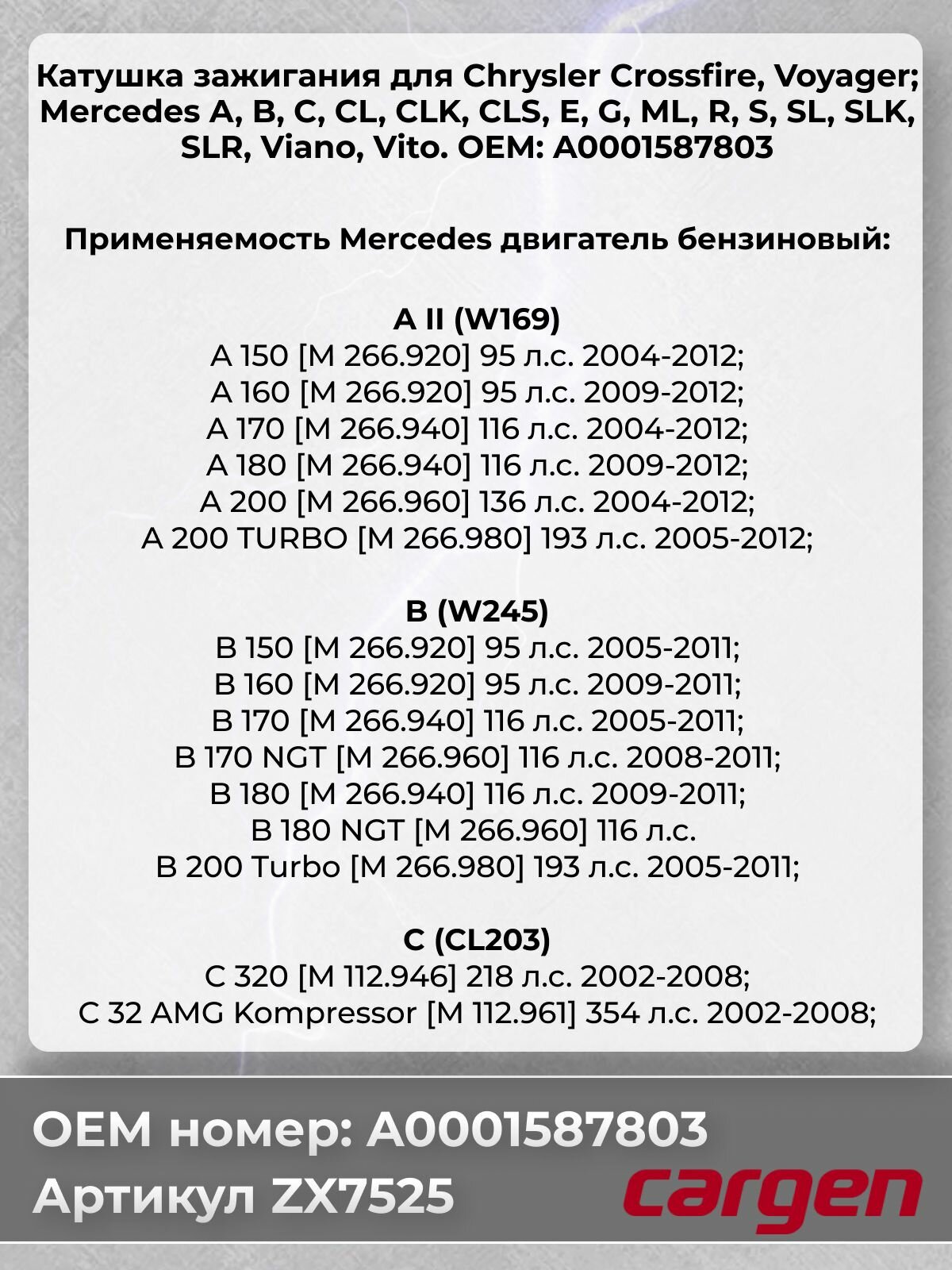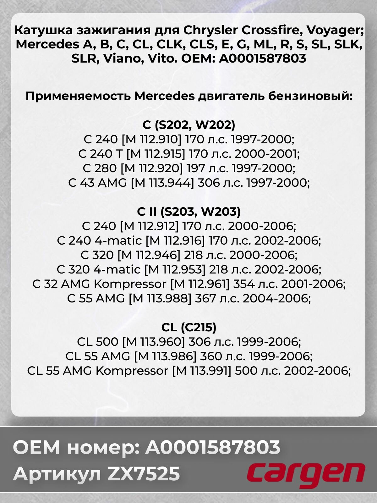 Катушка зажигания Мерседес Mercedes-Benz A-Class B-Class C-Class E-Class G-Class ML CL CLK S SL SLK SLR OEM: A0001587803: сравнение цен, характеристики, фото, актуальное наличие и цены.