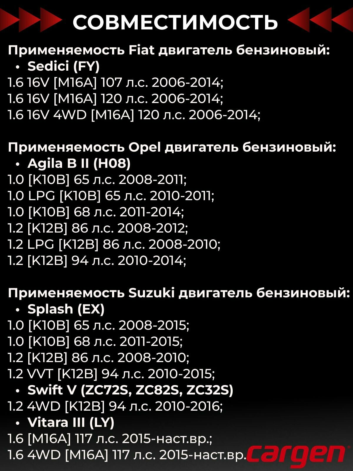 Cadillac Escalade, Chery Amulet, Chery Fora, Chery Tiggo, Chevrolet Avalanche, Chevrolet Aveo, Chevrolet Cruze, Chevrolet Kalos, Chevrolet Lacetti, Chevrolet Lanos, Chevrolet Rezzo, Chevrolet Silverado, Chevrolet Spark, Chevrolet Suburban, Chevrolet Tahoe, Daewoo Gentra, Daewoo Kalos, Daewoo Lacetti, Daewoo Lanos, Daewoo Leganza, Daewoo Matiz, Daewoo Nexia, Daewoo Nubira, Daewoo Rezzo, Fiat Sedici, GMC Sierra, GMC Sierra 1500, GMC Sierra 2500, GMC Yukon, Great Wall Safe, Honda Accord, Honda CR-V, Honda Civic, Honda FR-V, Honda HR-V, Honda Prelude, Honda Shuttle, Hummer H2, Hyundai Accent, Hyundai Elantra, Hyundai Getz, Hyundai Lantra, Hyundai Matrix, Hyundai Santa Fe, Hyundai Sonata, Hyundai Trajet, Kia Cerato, Kia Magentis, Kia Picanto, Kia Rio, Kia Sportage, LADA Vesta, LADA X-RAY, Mazda 2, Mazda 3, Mazda 323, Mitsubishi Colt, Mitsubishi Galant, Mitsubishi Lancer, Mitsubishi Santamo, Mitsubishi Space Star, Nissan Almera, Nissan Almera Tino, Nissan Altima, Nissan Cube, Nissan Micra, Nissan Note, Nissan Primera, Nissan Qashqai, Nissan Teana, Nissan Tiida, Nissan X-Trail, Opel Agila, Opel Astra J, Ravon Gentra, Ravon Nexia R3, Renault Clio, Renault Duster, Renault Kaptur, Renault Laguna, Rover 400, Subaru Forester, Subaru Impreza, Subaru Justy, Subaru Legacy, Suzuki Alto, Suzuki Carry, Suzuki Grand Vitara, Suzuki Ignis, Suzuki Liana, Suzuki SX4, Suzuki Splash, Suzuki Swift, Suzuki Vitara, Suzuki Wagon R, Volkswagen Golf, ГАЗ 2217, ГАЗ 3302 Газель, ГАЗ Газель, ГАЗ Соболь, ГАЗ-3307, ГАЗ-53, ГАЗ-66, ЗИЛ-130, ЗИЛ-131, ПАЗ-3205