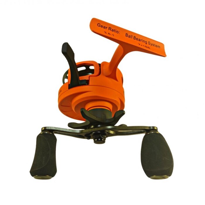 Зимняя мультипликаторная катушка — новый стандарт в подлёдной ловле, быстрый комфортный переход по лункам, возможность использовать плетёный шнур в сочетании с графитовым бланком делает снасть супер-чуткой, вываживание рыбы удилищем и катушкой с надёжным фрикционным тормозом минимизирует сходы. Катушка Jig It Team Dubna Chilly Sun, в сочетании с зимним удилищем, предназначена для подледной ловли хищной рыбы или отвесного блеснения с лодки. Главным отличием такой снасти является то, что вываживание рыбы происходит с использованием удилища и катушки. Зимний мультипликатор позволяет прочувствовать все достоинства полноценной катушки: быстрый подъем и опускание приманки в лунке, использование фрикционного тормоза, мягкость и плавность вращения катушки. Тонко настраиваемый фрикцион позволяет минимизировать сходы при вываживании рыбы, за счет сочетания работы бланка удилища и фрикциона. Jig It Team Dubna Cilly Sun – модель отличной мультипликаторной катушки для подледной ловли. Катушка имеет стильный дизайн и изготовлена из качественных материалов. Шпуля катушки изготовлена из алюминия. Надежный фрикционный тормоз обеспечивает уверенное вываживание крупного хищника. Удобная ручка позволяет эффективно контролировать приманку. Зимний мультипликатор отлично работает как с лесками, так и с плетеными шнурами. Катушка предназначена для отвесного блеснения со льда или с лодки. В сочетании с качественным удилищем, катушка обеспечит эффективную ловлю щуки, судака, берша, окуня. Настройка фрикциона выполняется традиционной для мультипликаторных катушек "звездочкой" на ручке катушки, а быстрое ослабление тормоза может быть выполнено непосредственно во время вываживания. Легкое и плавное вращение катушки обеспечивают 8 подшипников. Передаточное отношение 3,6:1 дает возможность быстро намотать леску на шпулю катушки, в отличие от обычных зимних катушек с передаточным отношением 1:1. Наличие возможности отдать немного лески по типу байтраннера позволяет быстро менять глубину при проверке всех горизонтов ловли.