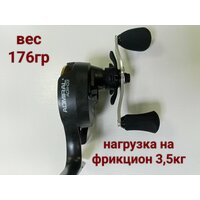 -фрикцион же регулируется звёздочкой, расположенной на оси рукояти. при работе фрикциона рукоять не вращается вместе со шпулей. -ножка катушки удлиненная - высокая, что удобно для использования удилища в перчатках -подшипников 3+1 -нагрузка на фрикцион 3,5кг - передаточное число 2.5:1 -вес всего 175гр