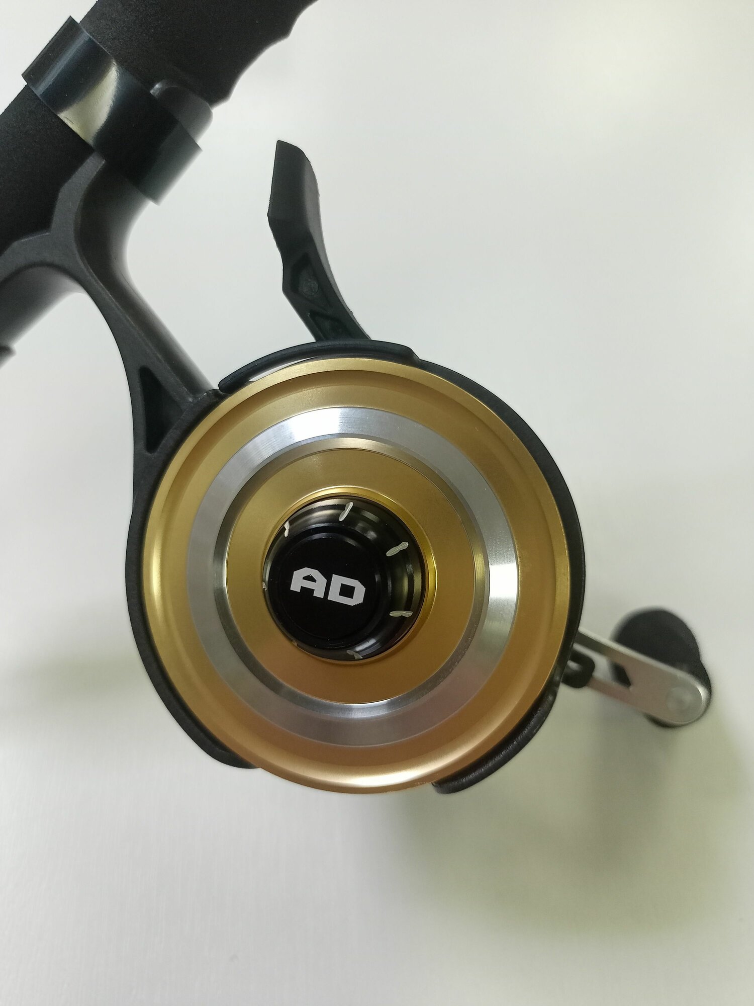зимняя мультипликаторная катушка с курком до быстрого спуска приманки на нужную глубину -кнобы разборные