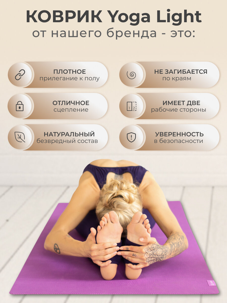 - Основа из природного каучука позволяет достичь отличного сцепления с полом, что обеспечивает безопасность в выполнении асан.
