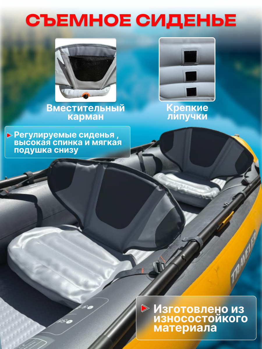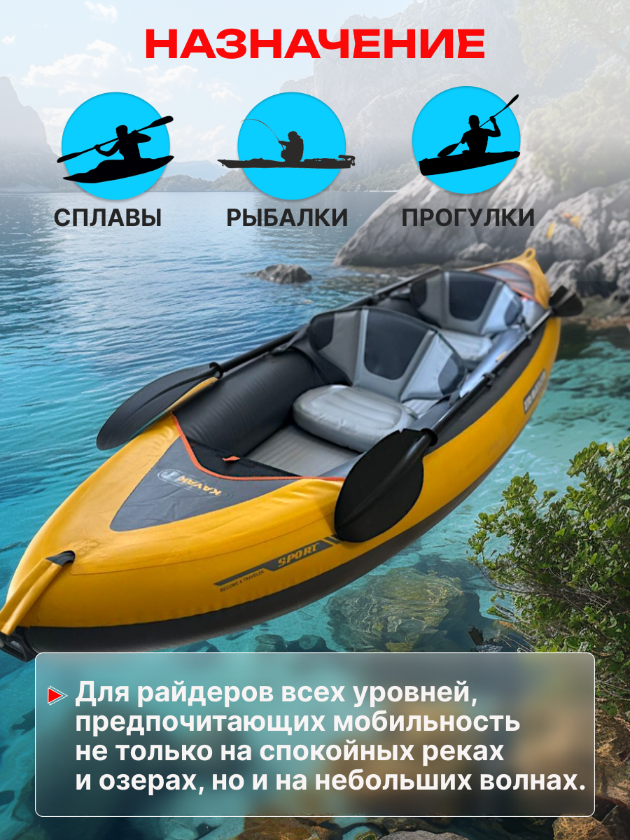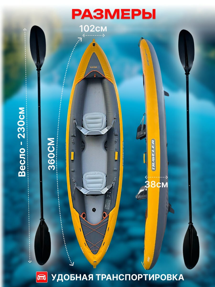 Каяк «Премиум», двухместный, надувной, для двух человек, ПВХ, жёлтый/серый: сравнение цен, характеристики, фото, актуальное наличие и цены.
