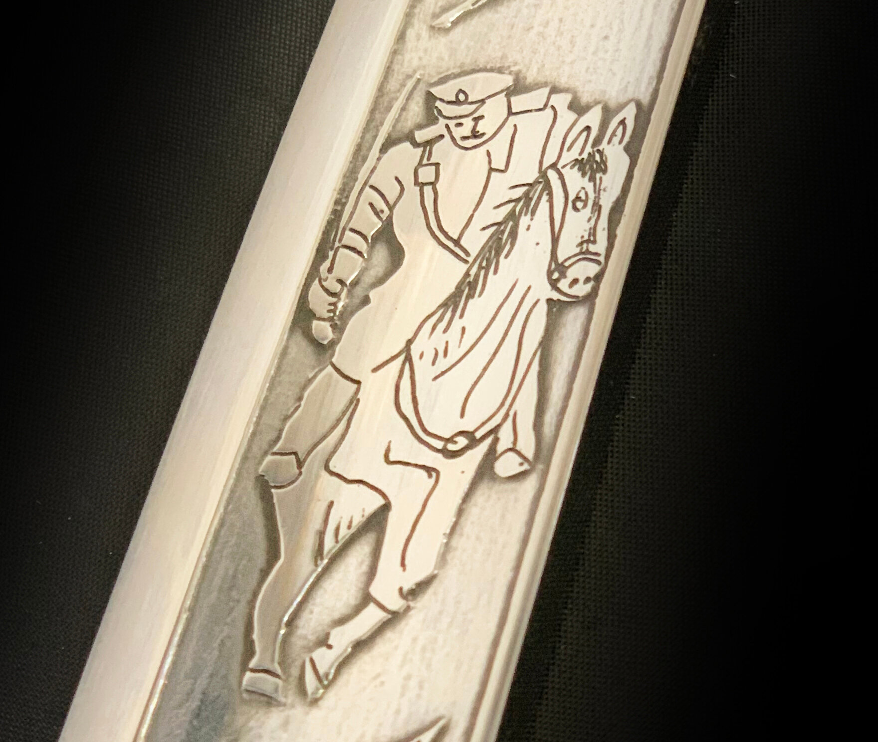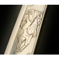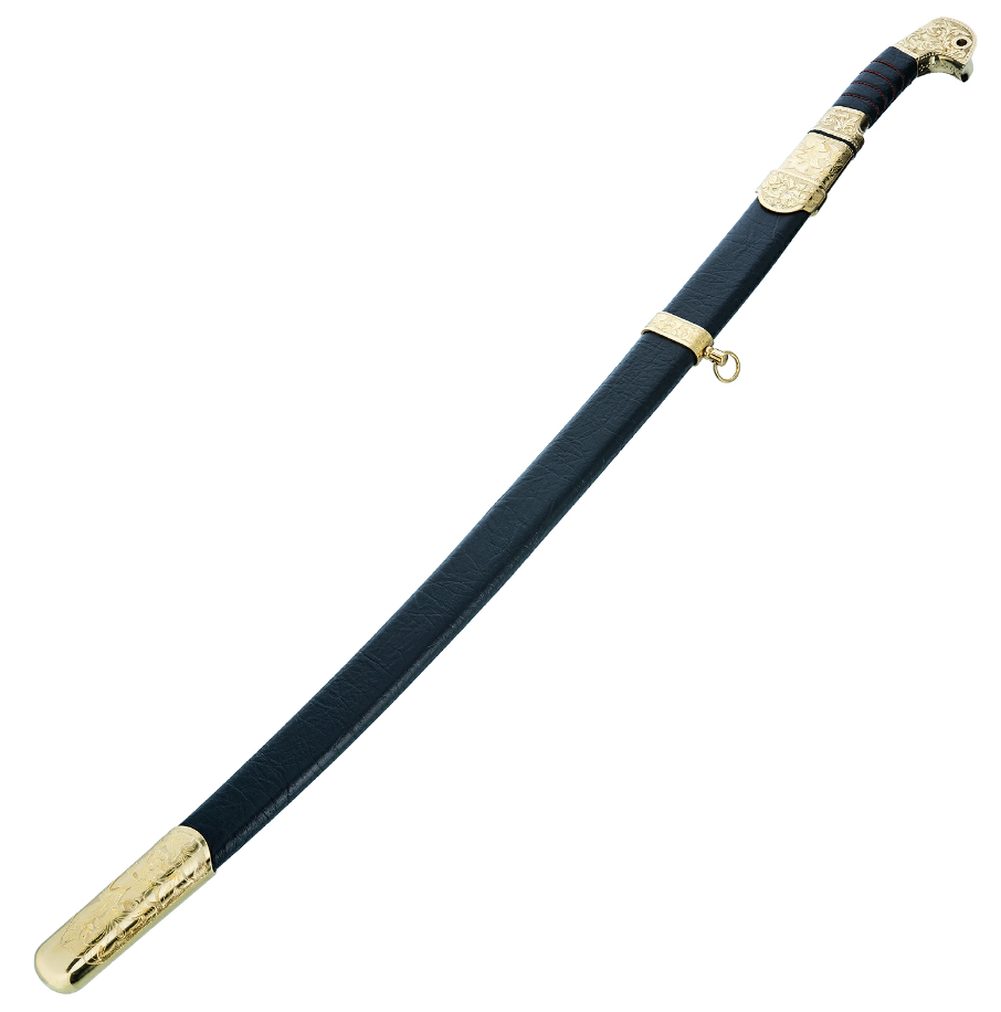 Кованная казачья шашка была принята на вооружение в конце 18 века. Наградной вариант казачьей шашки использовался для поощрения военнослужащих офицерских чинов царской армии. Сталь клинка : 95Х18. Сталь изготавливается и куется строго по технологии. На клинке методом химического травления, вручную нанесен традиционный растительный узор. Лезвие: Подведено под заточку Крепление рукояти : Боевое (цельное) Ножны: выполнены из массива сосны для большей устойчивости к деформации, обтянуты качественной натуральной кожей и прошиты. Латунный прибор ножен состоит из устья, обоймицы и наконечника. Темляк: изготовлен методом плетения мастерами из натуральной кожи. длина общая в ножнах -103 см, общая - 991 мм клинка- 815 мм ширина лезвия по обуху 29мм толщина металла 4 мм Твердость по Роквеллу 39 HRC В комплекте- тканевый чехол, сертификат, каталог компании "Люксовв" Примечание Товар сертифицирован Место изготовления- г. Омск