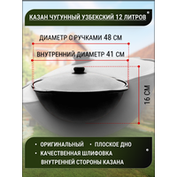 Казан 12 л. чугунный Узбекский с крышкой алюминиевой в комплекте + тренога со съемными ножками (подставка под казан) - отличный выбор для любителей восточной кухни и ценителей качественных кухонных аксессуаров.