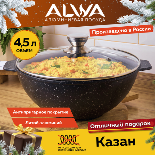 Казан с крышкой алюминиевый литой с антипригарным покрытием объемом 4,5 литра от TM ALWA- это незаменимая вещь для приготовления аппетитных блюд не только на кухне, но и на природе.