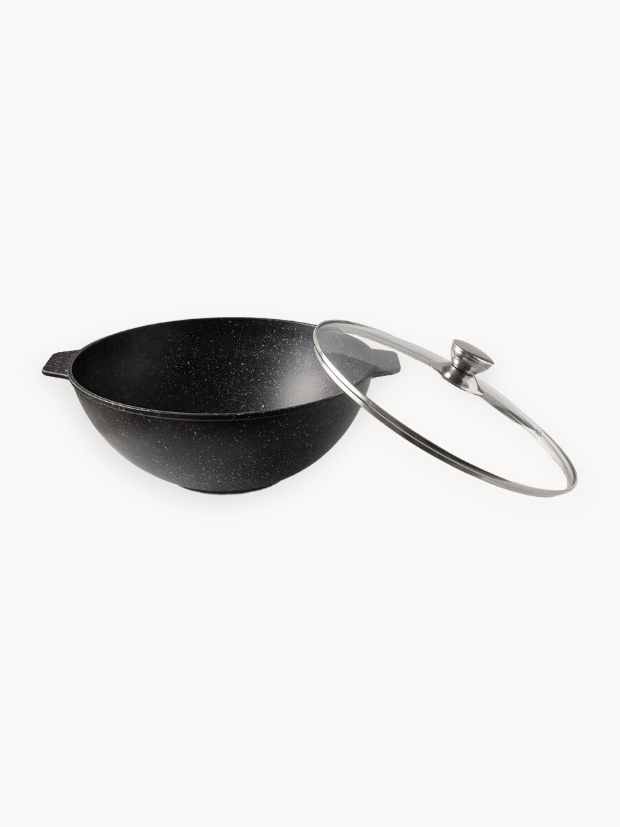 Он изготовлен из высококачественного литого алюминия, который обеспечивает равномерное распределение тепла и сохранение температуры. Казанок имеет антипригарное покрытие, которое позволяет легко очищать его после использования и предотвращает пригорание пищи. Мы производим все наши изделия в России, благодаря высокотехнологичному оборудованию, они безупречного качества и по доступной цене, соответствуют стандартам качества и ГОСТ. Посуда для дома с толстым дном изготовлена из литого алюминия с антипригарным напылением на водной основе. Отличная замена афганскому казану. За счет утолщенных стенок и основания она способна долго держать тепло, способствует прогреванию поверхности. Вся продукция прочная, легкая и максимально устойчива к деформациям. Казан для плова, для костра, для плиты - мечта хозяйки, объемный с диаметром 28 см, оснащен стеклянной крышечкой, которая обеспечивает герметичность и сохраняет аромат и вкус блюд.