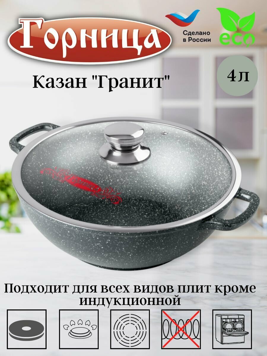 Купить Казан 4 литра Гранит, алюминиевый 280/100 литые ручки, с крышкой, Горница с доставкой по всей России. Казан 4 литра Гранит, алюминиевый 280/100 литые ручки, с крышкой, Горница: сравнение цен, характеристики, фото, актуальное наличие и цены.