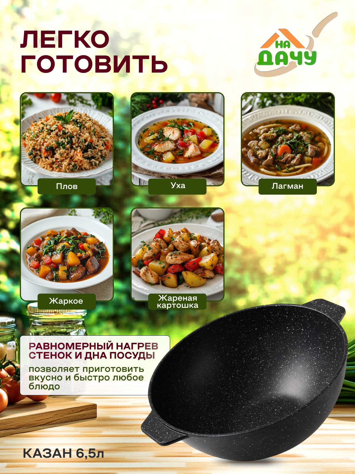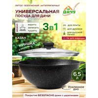 Казан литой антипригарный 6,5 л с крышкой от бренда "На Дачу"- Король восточной кухни для большой семьи и праздников!