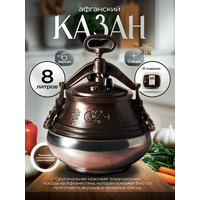 Двухцветный афганский казан скороварка Rashko Baba – это красивая традиционная посуда из Афганистана (оригинал), которая поможем быстро приготовить вкусные и полезные блюда. Прогрев внутри осуществляется равномерно, еда не пригорает, как и при использовании посуды с антипригарным покрытием, получается вкусной и ароматной. Подходит для приготовления вкуснейшего плова, супа, жарки и тушения мяса и овощей. Алюминиевый казан имеет небольшой вес и является незаменимым помощником в туризме походной кухне или уличном использовании – посуда идеальна для туристического похода, дачного отдыха, кемпинга, рыбалки, охоты. На природе, можно использовать с подставкой под казан - треногой. Также, казанок отлично подходит для домашнего использования на газовых, электрических плитах, газовых плитках. Его можно использовать как казан, котелок, скороварку, пароварку. Готовить можно с использованием металлических приборов шумовок и половников и другой утвари. Он может заменить привычные сковороды и кастрюли. Оснащен подвижными ручками для безопасного перемещения, имеет 3 клапана (2 рабочих и один аварийный), который предотвращает срыв крышки и надежным замком для плотной фиксации затвора к корпусу. В крышке установлена оригинальная силиконовая прокладка. Снаружи казан окрашен жаропрочной краской. Плоское дно, диаметром 15,5 см, позволяет готовить на варочных поверхностях, но на индукционной плите возможно использование только со специальным адаптером. Обратите внимание, что фактический объем казана меньше, информацию об этом Вы можете найти в соответствующем фото. Полезный объём казана 65-80%, при загрузке более этой нормы возникает вероятность засорения клапана. Подходит до 6 персон. Казан — это отличный подарок! В подарок к казану - приправа для плова 120 гр .