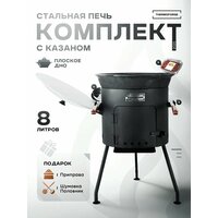 Купить Казан чугунный с печкой, дверцей и крышкой 8 литров с доставкой по всей России.