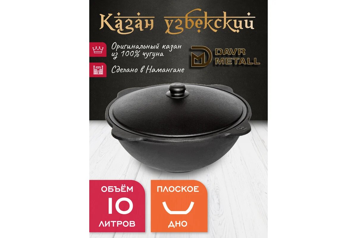 Казан чугунный узбекский DavrMetall 10 л (круглое дно) с алюминиевой крышкой: сравнение цен, характеристики, фото, актуальное наличие и цены.