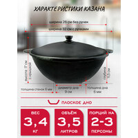 | Дополнительная информация | Казан чугунный узбекский DavrMetall 6 л плоское дно с алюминиевой крышкой |