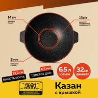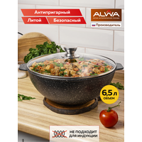 Казан алюминиевый литой с антипригарным покрытием объемом 6,5 литра, со стеклянной крышкой от TM ALWA- это незаменимая вещь для приготовления аппетитных блюд не только на кухне, но и на природе. Мы производим все наши изделия в России, благодаря высокотехнологичному оборудованию, они безупречного качества и по доступной цене, соответствуют стандартам качества и ГОСТ. Посуда для дома с толстым дном изготовлена из литого алюминия с антипригарным покрытием на водной основе. За счет утолщенных стенок и основания она способна долго держать тепло, способствует равномерному прогреванию поверхности. Казанок для плова, для плиты, для костра- мечта хозяйки объемный с диаметром 32 см, снабжен крышечкой. Она выполнена из термостойкого стекла с окантовкой из нержавеющей стали, есть пароотвод. Благодаря цельнолитым ручкам так же подходит для запекания рыбы, овощей в духовке. Вы сами решаете, какие функции казанок походный выполняет сегодня. Скороварка создана для каждой хозяйки и не требует специального ухода. Можно мыть в посудомоечной машине на ЭКО режиме. Технология ручного литья с кристаллизацией под давлением позволяет увеличить срок службы, это один из самых лучших и современных методов производства. Казанок с крышкой подойдет для духового шкафа, для всех типов плит, кроме индукционных. Кухонная утварь марки "АЛЬВА" - поможет вам определиться с подарком мужчине, папе, дедушке на юбилей, 23 февраля. Термокастрюля для шашлыка. Посуда для кухни красивая - замечательный подарок женщине, маме, подруге, бабушке на День Рождения. Благодаря легкости и прочности изделия, его можно брать с собой на дачу, отдых на природе, рыболовный лагерь, пикник, поход в лес, на море. Набор посуды для пикника. Кастрюля антипригарная станет неизменным помощником в походной кухне. Переходите в наш магазин и Вы можете собрать набор любимой посуды.