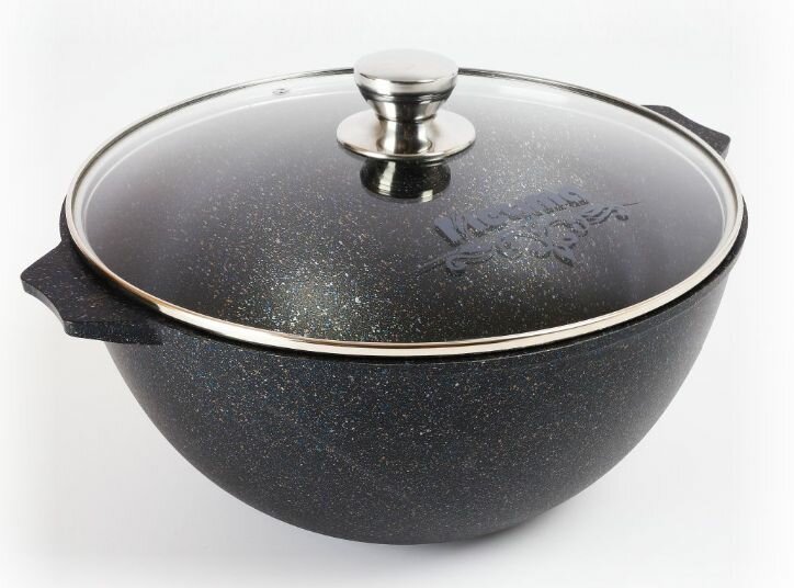 Казан для плова с антипригарным покрытием 7л Мечта Гранит Black - 1 шт., стеклянная крышка - 1 шт.