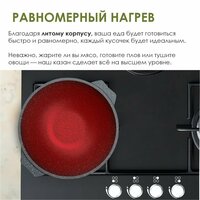 Казан с антипригарным покрытием Гранит от немецкой марки Greblon является полностью безвредным для вашего здоровья при готовке ваших любимых блюд. Казан подходит для таких видов плит как: СВЧ, газовых плит, галогеновых конфорок, духовой шкаф до 200С , стеклокерамических плит и электрических плит. После готовки можно мыть посуду в посудомоечной машинке.