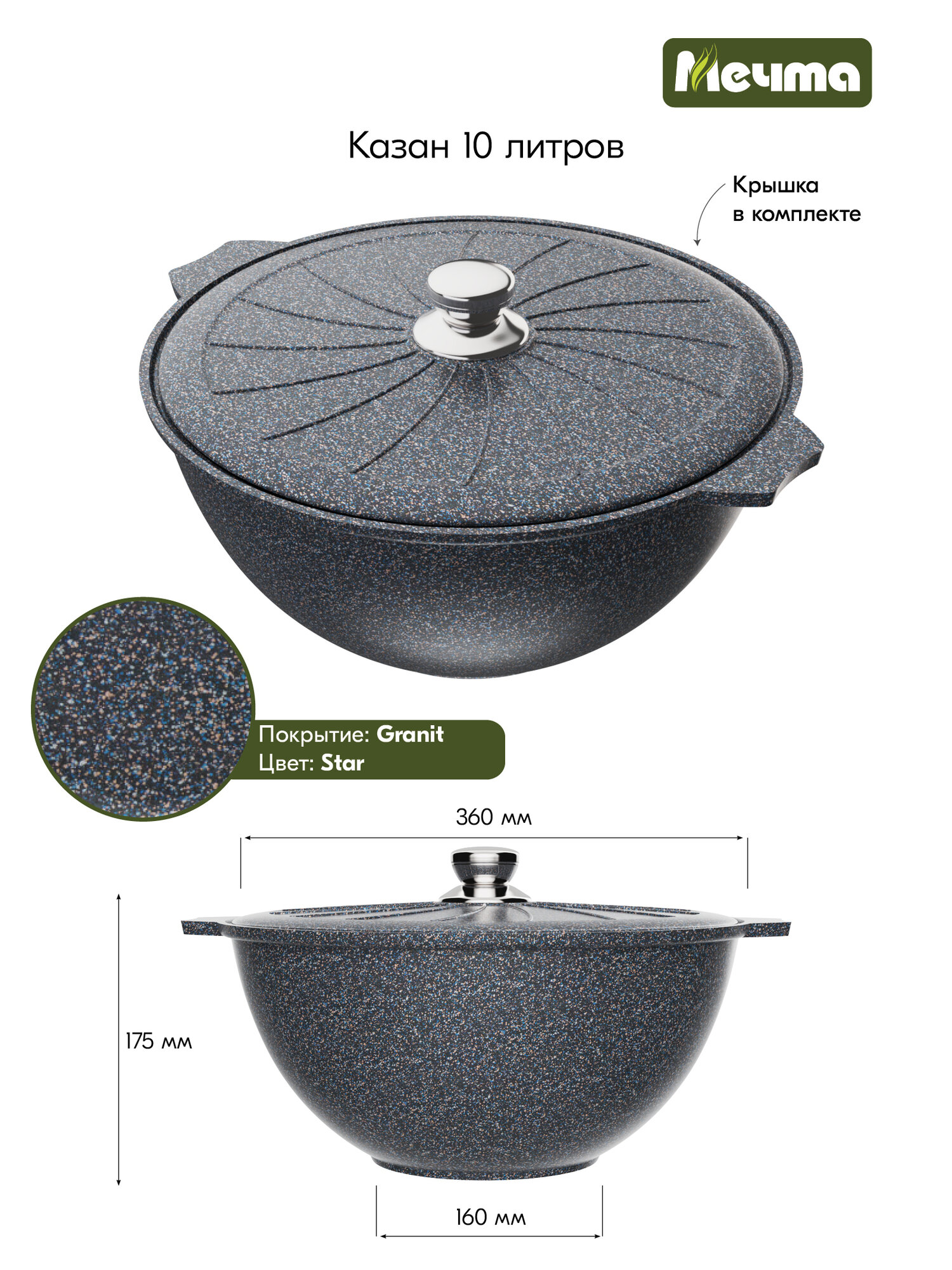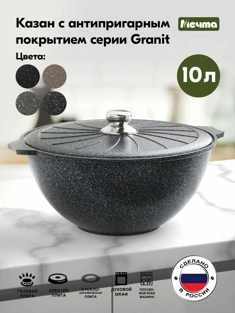 Казан для плова «Мечта» 10л Гранит с антипригарным покрытием с металлической крышкой, можно мыть в посудомоечной машине: сравнение цен, характеристики, фото, актуальное наличие и цены.