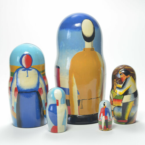 Предлагаем вашему вниманию пятиместную матрешку с изображением картин художника — авангардиста Казимира Малевича.