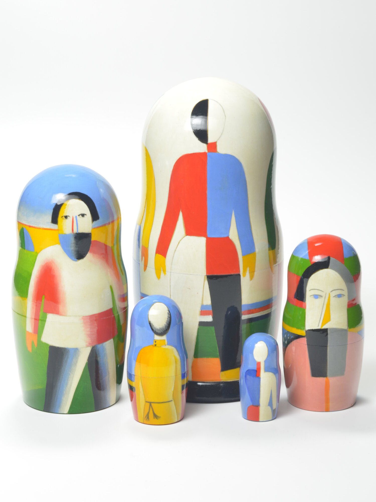 Предлагаем вашему вниманию пятиместную матрешку с изображением картин художника — авангардиста Казимира Малевича.