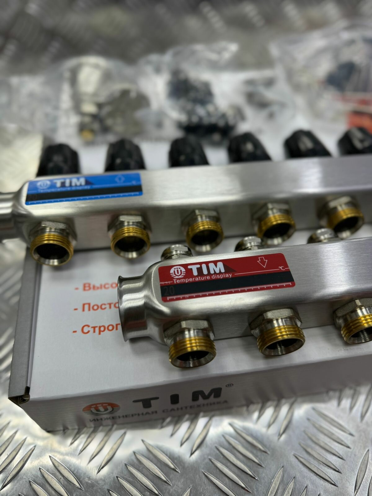 - Обратный коллектор - со встроенными термостатическими вентилями , межосевое - 50 мм, выхода 3/4" евроконус;