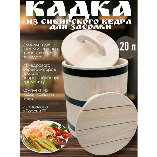 Кедровая кадка 20л для засолки с гнетом – идеальное решение для приготовления вкуснейших домашних солений! Эта деревянная кадка изготовлена из экологически чистого сибирского кедра и станет незаменимым помощником на вашей кухне.