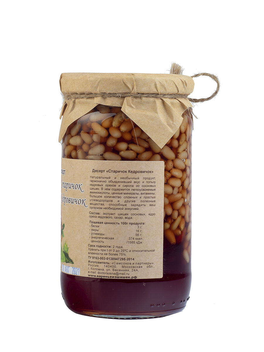 Кедровые орехи в сосновом сиропе 2 шт по 430г, Десерт «Старичок Кедровичок» компании «Варенье из шишек»: сравнение цен, характеристики, фото, актуальное наличие и цены.