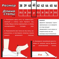 Длина стельки составляет 27,5 см, что соответствует российскому размеру 41.