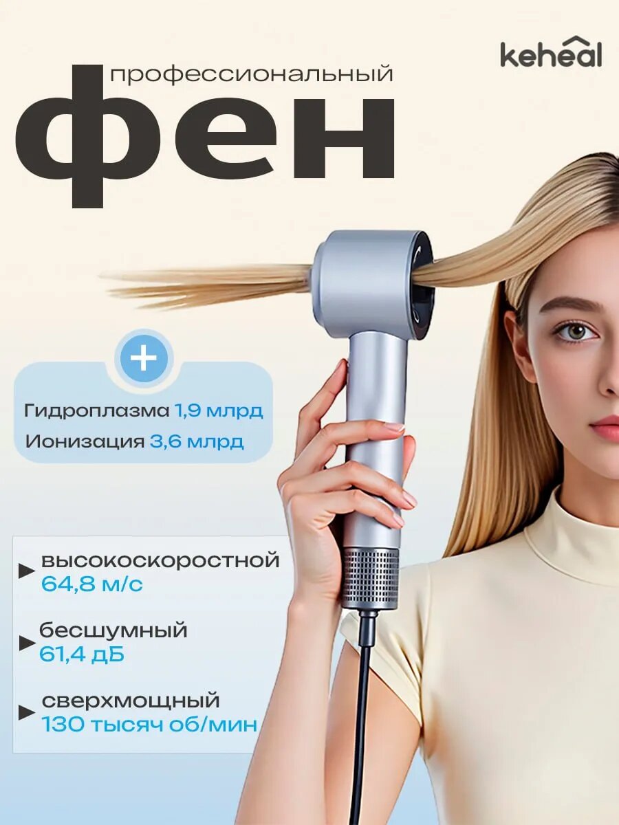 Купить Keheal «Professional» — Фен для волос GC-HC5P, профессиональный, с ионизацией, 1400 Вт, со съемным фильтром, серебристый с доставкой по всей России.