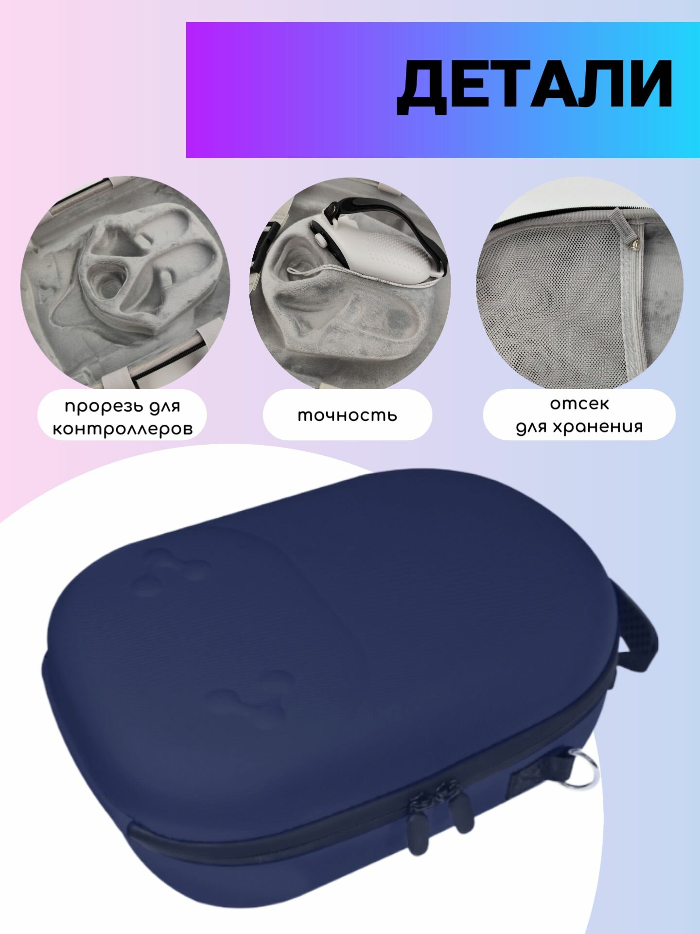 Этот чехол специально разработан таким образом, чтобы обеспечивать максимальную защиту. Для его создания использованы материалы высочайшего качества, что делает его устойчивым к воздействию влаги и ударам, благодаря внутреннему каркасу. Удобный дизайн с качественной молнией и внутренними разделителями позволяет отдельно и безопасно хранить гарнитуру и контроллеры, минимизируя риск повреждения.