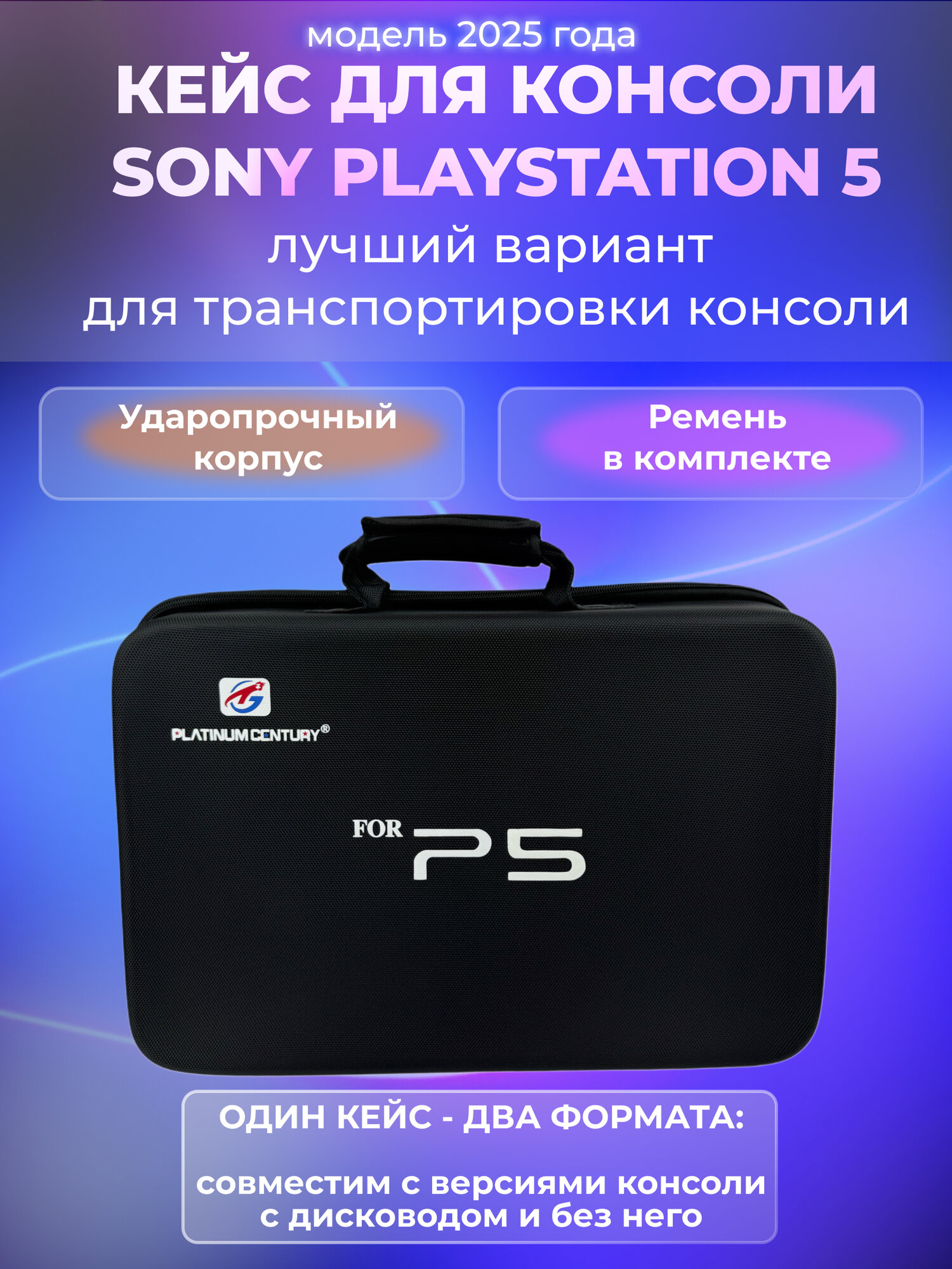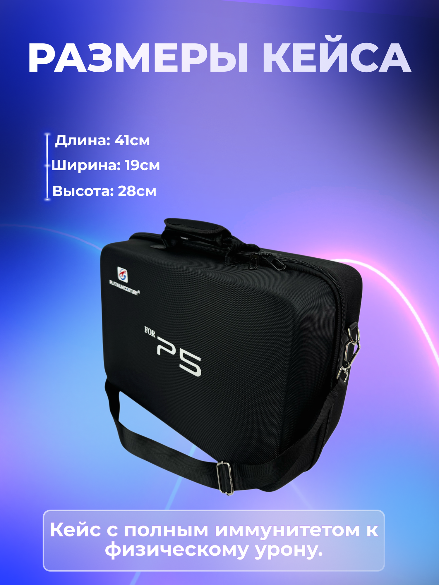 Эта стильная и лаконичная сумка станет идеальным аксессуаром для настоящих ценителей игрового оборудования от Сони PlayStation. Она предназначена специально для защиты и транспортировки приставки PS 5. Внутреннее пространство кейса продумано до мелочей: конструкция включает в себя секции различного размера, которые идеально подходят под консоль плейстейшен 5, контроллеры Dualsense и дополнительные аксессуары, такие как наушники, игровые диски и зарядные кабели. Специальные фиксирующие ремешки способствуют надёжному закреплению всех элементов внутри и предотвращает их возможное повреждение при переноске. Их использование помогает организованно разместить все составляющие комплекта. Благодаря тому, что сумка выполнена из ударопрочного материала, она обеспечивает высокий уровень безопасности во время перемещения, что необходимо для геймеров-путешественников. Стильный внешний вид делает ее привлекательным не только для личного использования, но может стать замечательным подарком любителям игр на консоли ps5. Кейс для playstation 5 изготовлен с учётом всех нюансов современного игрового мира и отвечает всем требованиям владельцев ps 5. Внимание к деталям можно увидеть во всём - от молний до встроенных карманов под мелкие элементы. Эргономичные рукоятки облегчают переноску, делая путь с сони плейстейшен 5 более удобным и безопасным. В комплекте идет удобный регулируемый ремень, который позволяет носить чехол на плече. Продлите жизнь своей консоли вместе с брендом Dexgame.