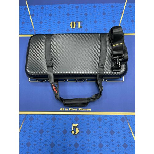 Кейс - сумка( с жесткими стенками) для хранения и транспортировки покерных фишек. Модель на 300 фишек, Фишку Дилер D75мм, Фишку All in треугольной формы, 2 колоды карт. Материал - эко кожа. Цвет - черный.
