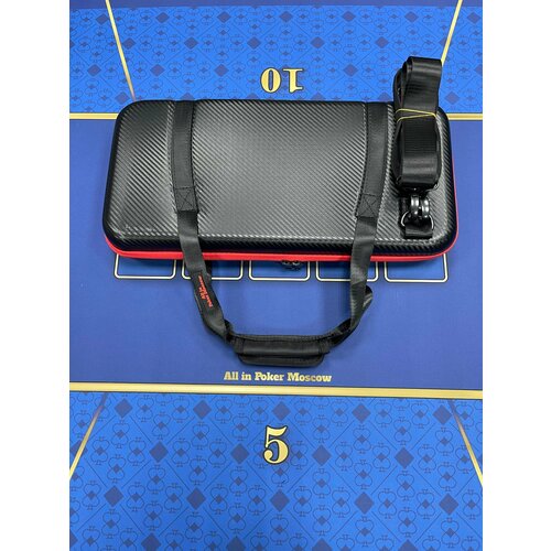 Кейс - сумка( с жесткими стенками) для хранения и транспортировки покерных фишек. Модель на 300 фишек, Фишку Дилер D75мм, Фишку All in треугольной формы, 2 колоды карт. Материал - эко кожа. Цвет - черный.