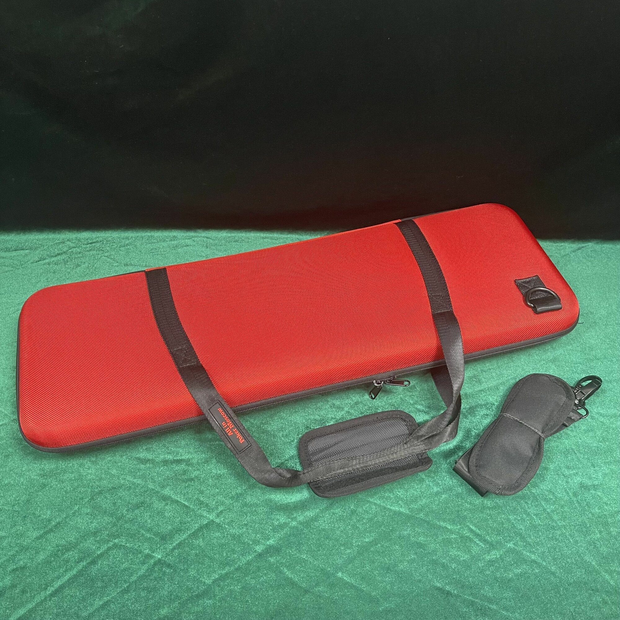 Кейс - сумка( с жесткими стенками) для хранения и транспортировки покерных фишек. Модель на 500 фишек, 2 колоды карт, Большой Баттон 75 мм, фишку all in 70-75 мм. Материал - ткань. Цвет - красный с узором.