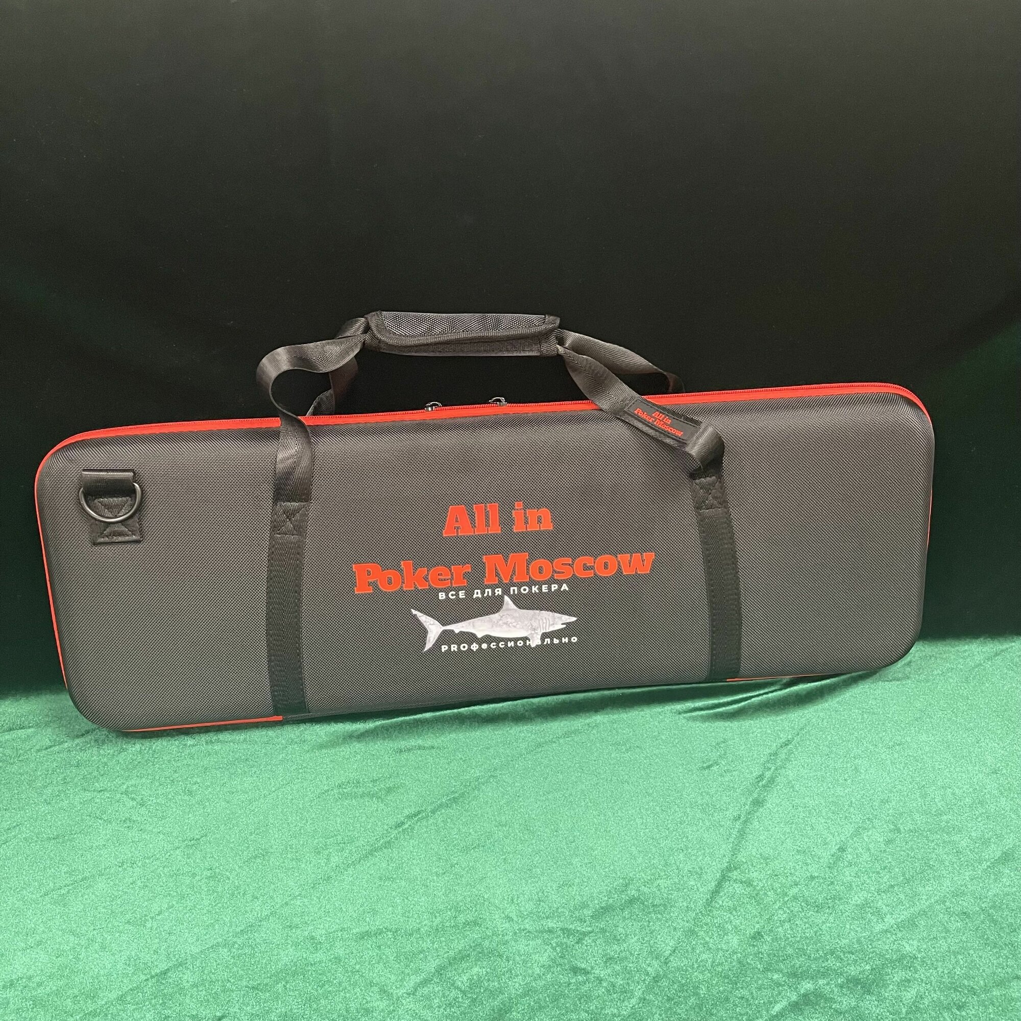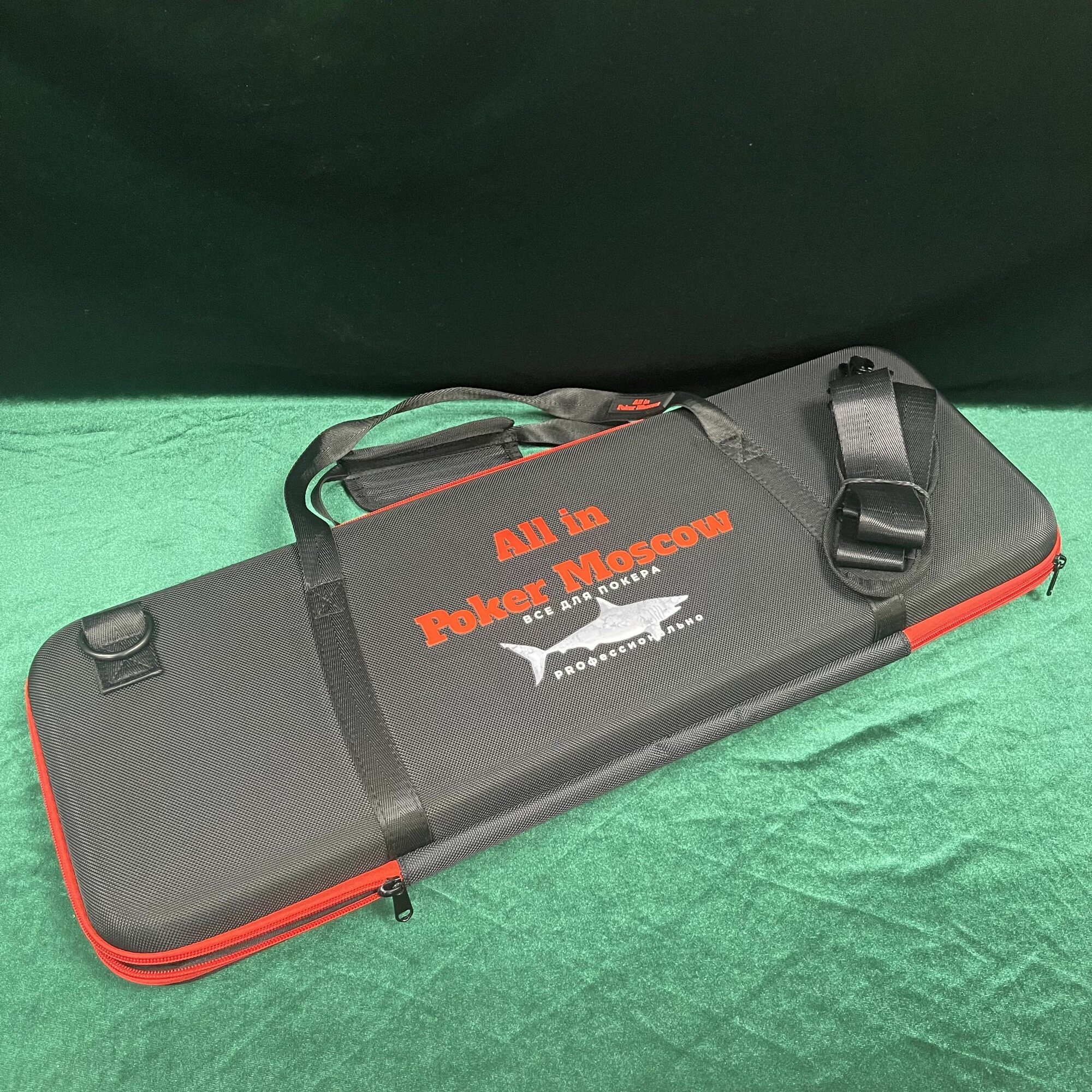 Кейс - сумка( с жесткими стенками) для хранения и транспортировки покерных фишек. Модель на 500 фишек и 2 колоды карт. Материал - ткань. Цвет - черный с красной обводкой и логотипом.