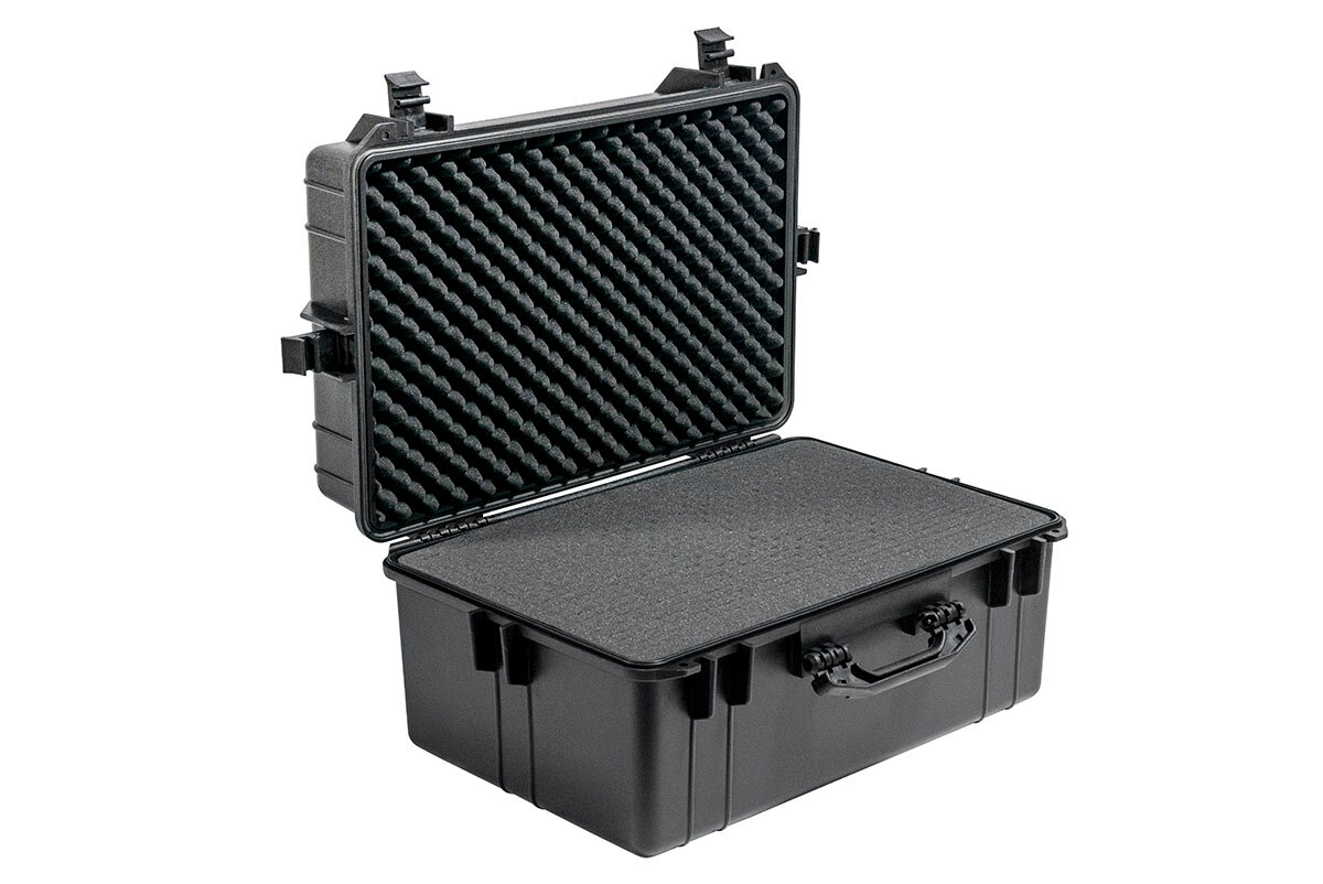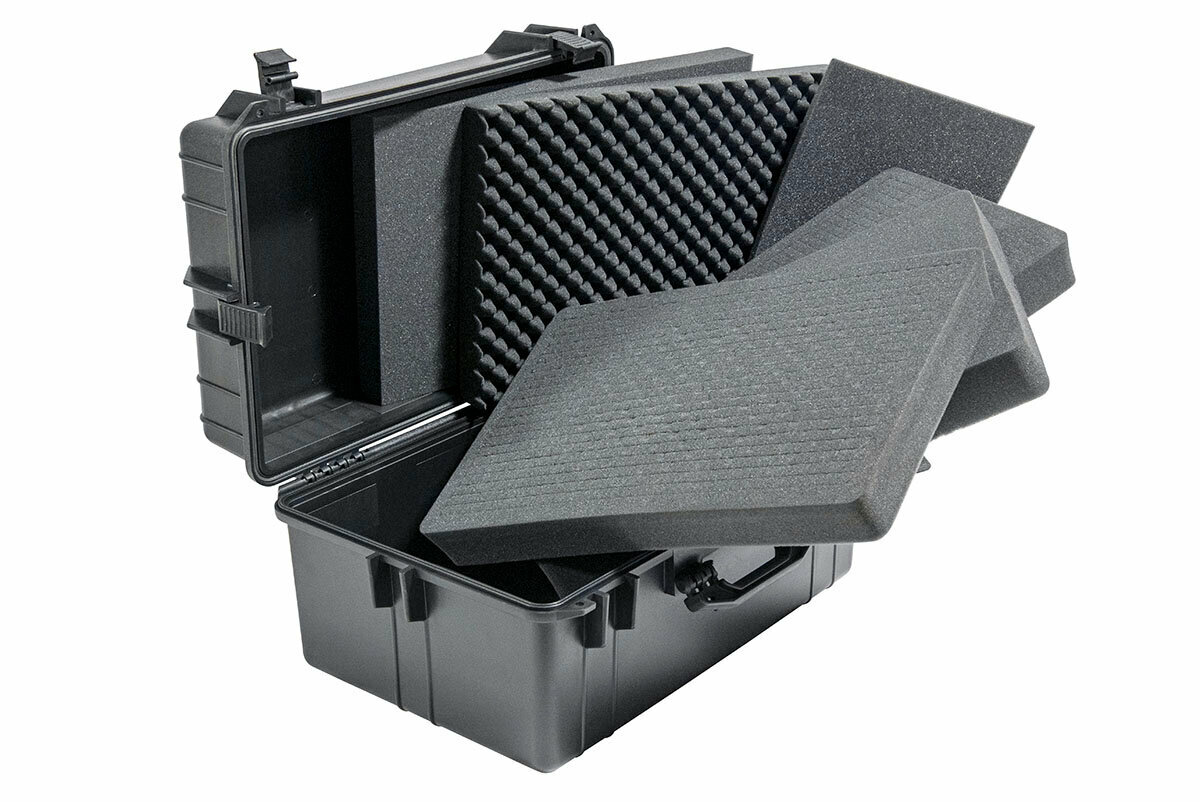 Защитные кейсы РИФ изготовлены из противоударного и чрезвычайно прочного пластика – его можно переехать на автомобиле, и ценное содержимое не пострадает. Кейсы абсолютно герметичны и содержимое кейса гарантировано защищено от доступа пыли и влаги благодаря резиновой прокладке и плотно закрывающейся крышке.