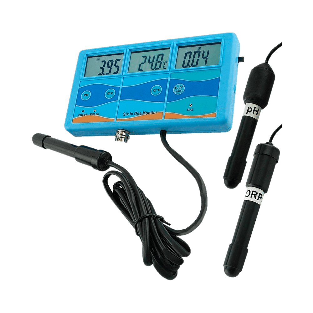 Несмотря на то, что данная модель обладает небольшими габаритами и малым весом, прибор снабжён тремя крупными ЖК дисплеями, на которых одновременно отображаются несколько показателей тестирования. В дополнение к прибору прилагаются три измерительных внешних электрода. Разброс измерений достаточно широк: 0-14 для фактора рН, ±1999мВ для редокс-потенциала, 10 - 19990 ппм для солёности, -50-+70°C для температуры и 0 - 39980 мкСм/см для электропроводимости. Автокомпенсанция температур предусмотрена в пределах от 0 до 50 градусов. Электропитание мультимонитора осуществляется от четырёх полуторавольтных батарей либо с помощью адаптера.