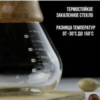 Кемекс стеклянный с мерной шкалой «Типика», 600 мл, с деревянной ручкой
