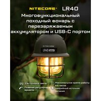 Купить Кемпинговый фонарь NITECORE LR40, Перезаряжаемый, Мульти-источник света с доставкой по всей России. Кемпинговый фонарь NITECORE LR40, Перезаряжаемый, Мульти-источник света: сравнение цен, характеристики, фото, актуальное наличие и цены.