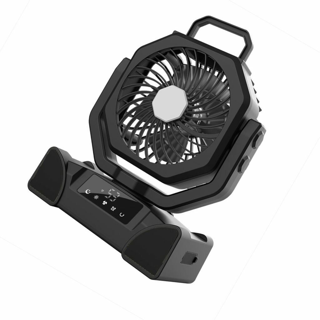 Кемпинговый вентилятор, портативный с зарядкой и освещением, LED-лампа — черный