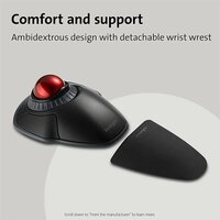 The Kensington trackball legacy continues with the latest addition to the patented Orbit Trackball with Scroll Ring the Orbit Wireless Trackball with Scroll Ring. You asked for wireless, and we delivered, with the same great features that have made the Orbit Trackball with Scroll Ring so popular, including a patented scroll ring that allows you to scroll up & down pages with ease; customizable buttons; dual wireless connectivity offering the flexibility of 2.4 GHz and Bluetooth (3.0 and LE), with 128-bit AES government-grade encryption security; four DPI settings (400, 800, 1,200, or 1,600) that let you easily adjust the cursor speed to fit your needs; a detachable wrist rest; ambidextrous design; and plug-and-play ease for Mac or PC.