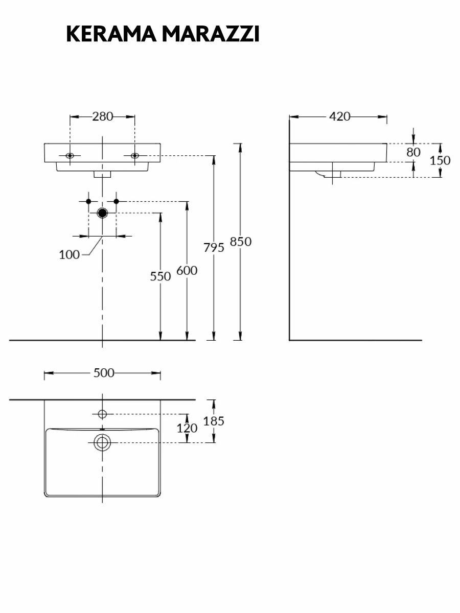 Купить KERAMA MARAZZI Раковина PRO 50 см, мебельная подвесная, белая глянцевая с доставкой по всей России.