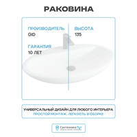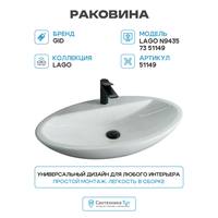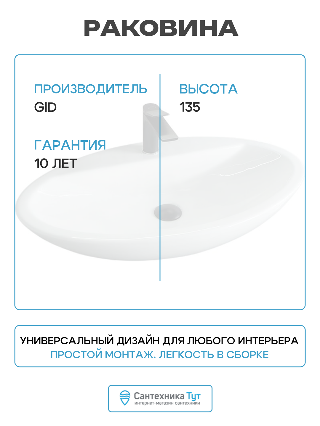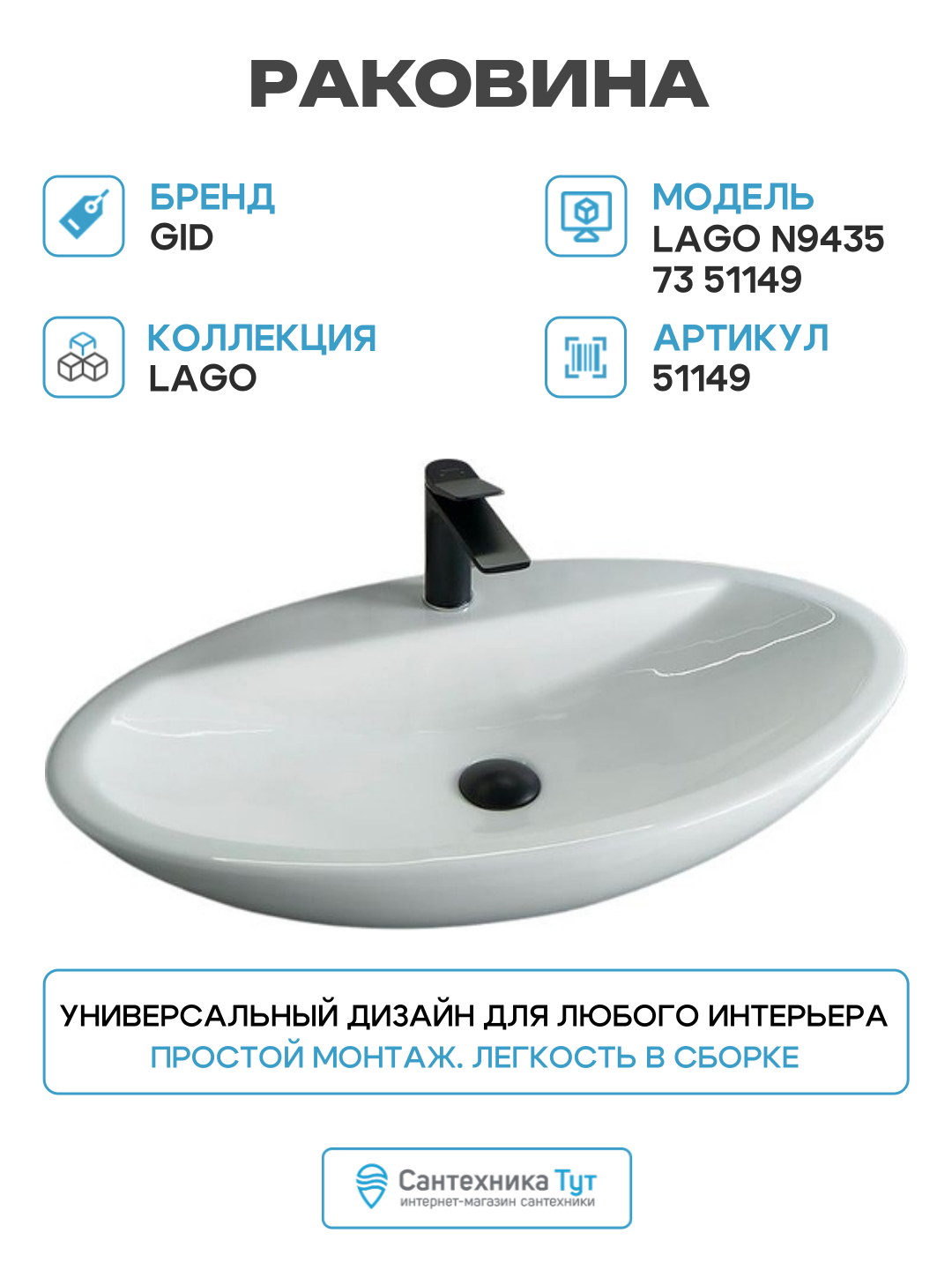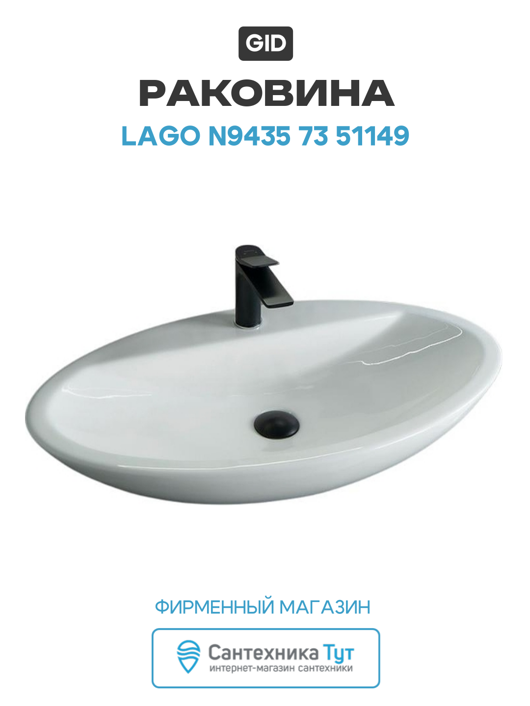 Раковина Gid Lago 73 N9435 51149 цвет Белый, современный стиль